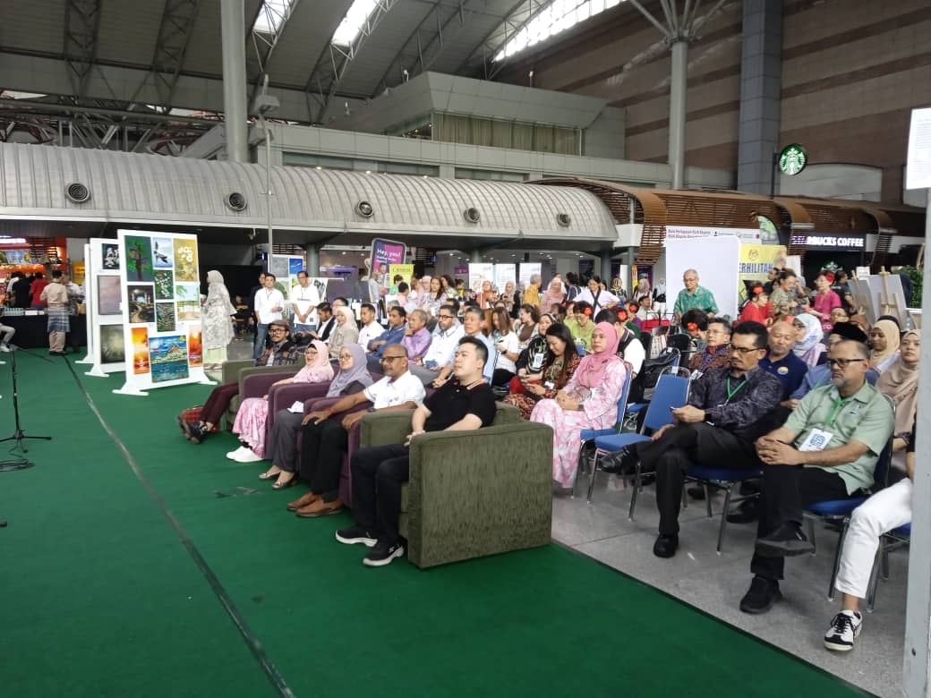The ESG-themed Art Exhibition at the KLIA Ekspres Arrival Hall, KL Sentral was officially launched by YBrs. Puan Norsham Binti Abd Latip, Deputy Secretary General (Natural Resources) from the Ministry of Natural Resources and Environmental Sustainability (NRES).