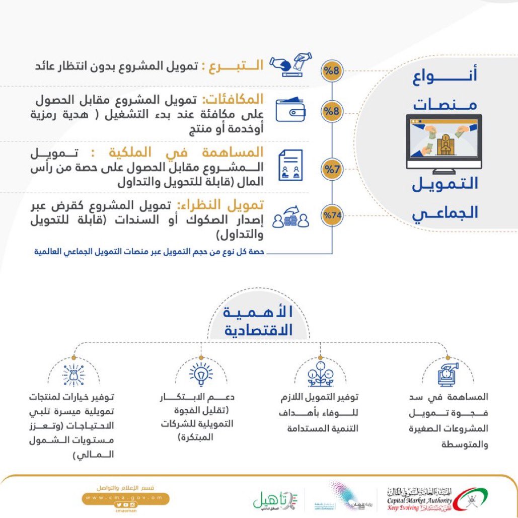 Platforms on 21 November 2021. Since then, the CMA had attracted overwhelming interest from both international and local crowdfunding fintech players, as the new regulation had been made very facilitative and allows cross-border investments. With the new regulation, the CMA will be regulating all crowdfunding activities for companies in Oman, including donation-based, rewards-based, equity-based and Peer To-Peer (P2P) financing.