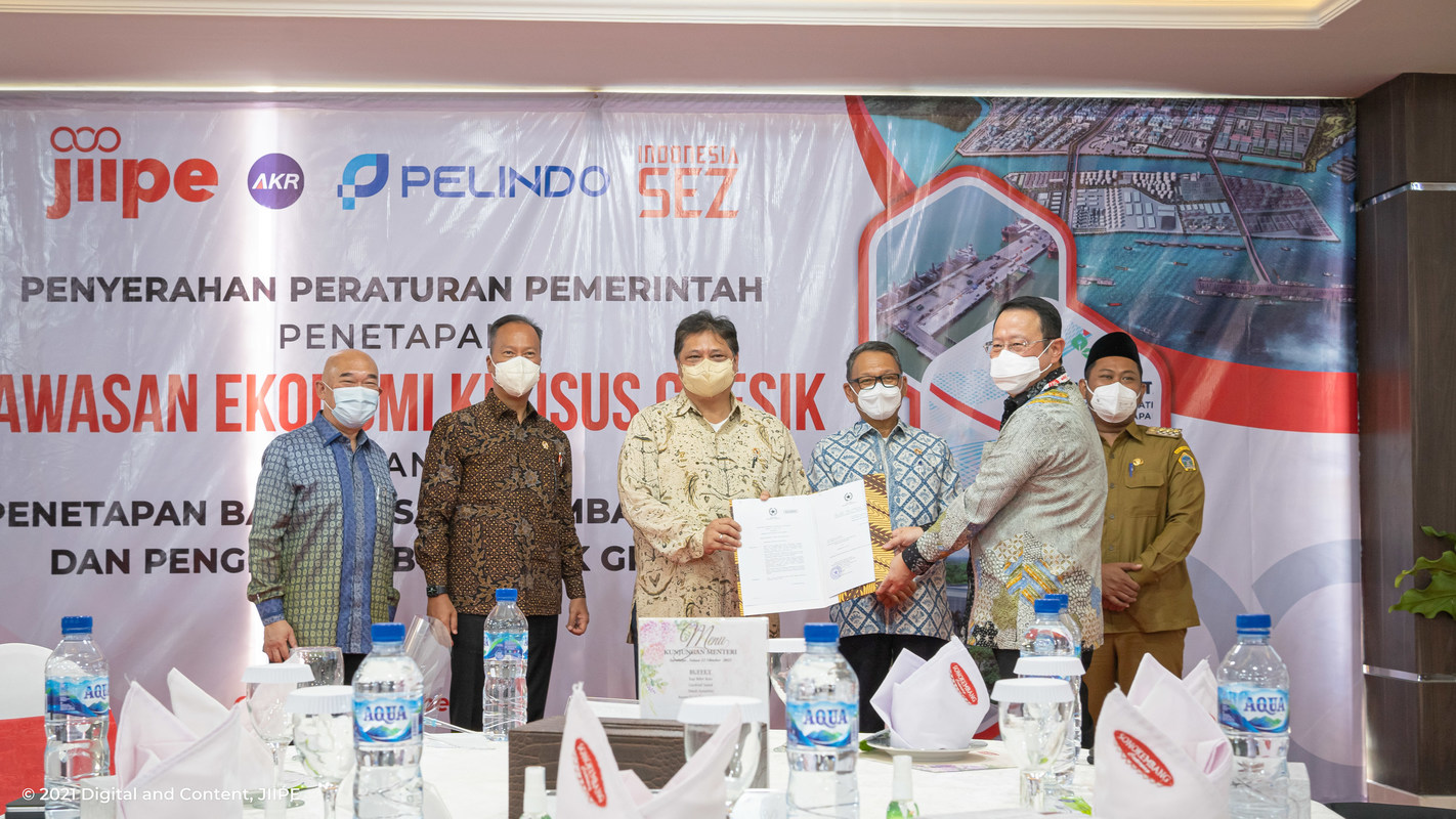 During a back-to-back event, Coordinating Minister of Economy, Airlangga Hartarto, also officially handed over SEZ status to JIIPE Gresik and inaugurated it as a Development and Management Entity (BUPP).