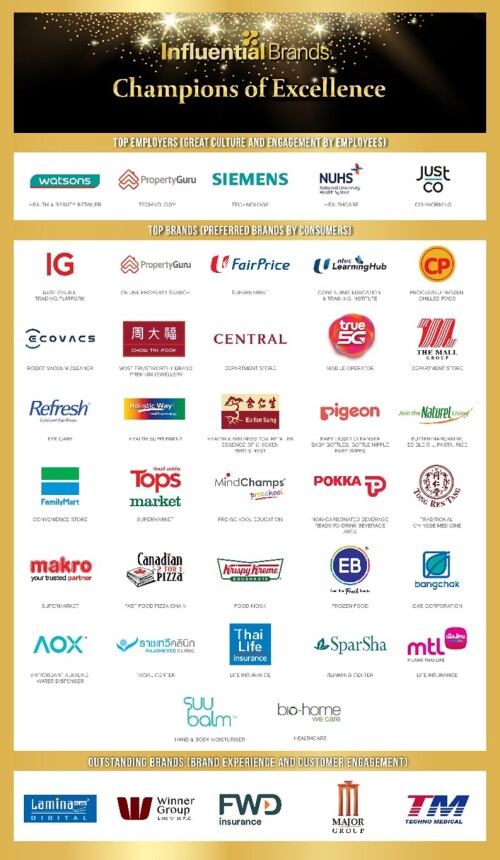 Based on their branding efforts to engage customers and provide an excellence experience, 5 companies from Thailand were recognised as Outstanding brands. Those are: FWD Insurance, Major Cineplex Group, Winner Group Enterprise, Techno Medical and Lamina Films.