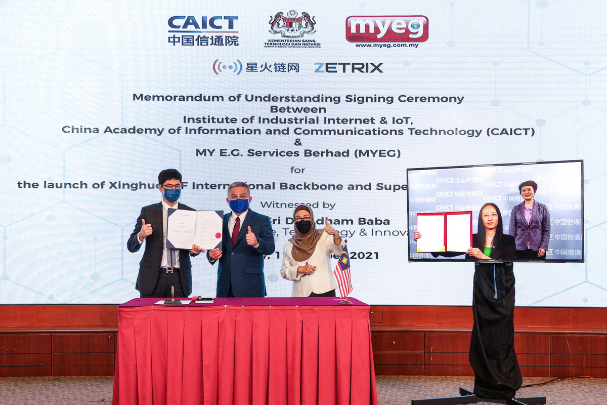MY E.G. Services Berhad (MYEG) today signed a Memorandum of Understanding (MoU) with Institute of Industrial Internet & IoT, China Academy of Information and Communications Technology (CAICT) of China for the international extension of China’s national blockchain network, Xinghuo Blockchain Infrastructure and Facility (“Xinghuo BIF”), by introducing backbone and supernodes outside China to be known as Zetrix.