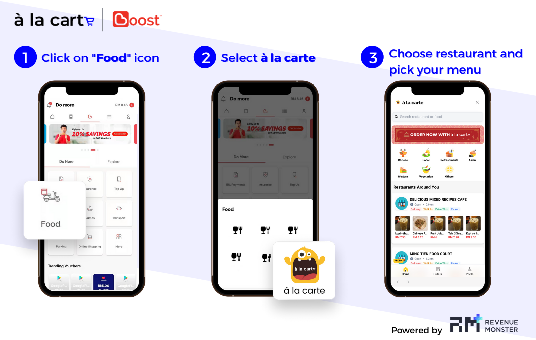 The partnership will see the integration of Revenue Monster’s online super store solution, à la carte directly into the Boost e-wallet app. With this, F&B merchants will be able to tap into close to nine million Boost e-wallet users, significantly increasing their market reach.