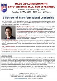 6 Secrets of Transformational Leadership Dato’ Idris Jala, CEO of PEMANDU ABOUT OUR SPEAKER Dato’ Sri Idris Jala is the current President and CEO of PEMANDU Associates and for 6 years he served as Minister in the Prime Minister’s Department, Malaysia. …