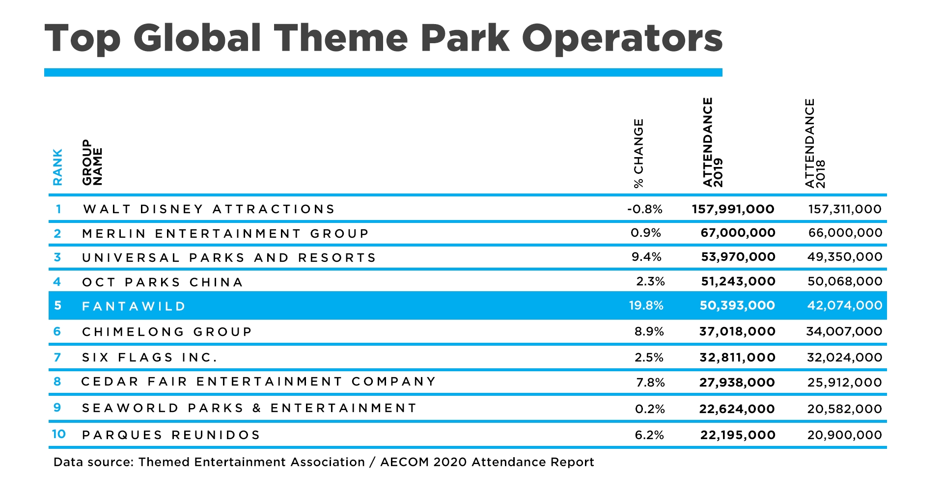 With 29 theme parks in operation and 10 more under development, Fantawild is one of the top drivers of China’s rapidly growing tourism industry and attracts more than 50 million visitors annually. The company is ranked 5th on the list of top 10 theme park groups worldwide, placing ahead of major US-based park operators such as Six Flags Group, Cedar Rapids Group and Sea World Attractions, among others.