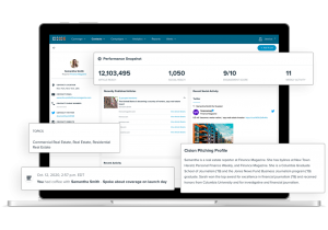 - Curated, master profiles: Powerful profiles which include more contact information, performance metrics, social profiles, pitching tips and content streams. Cision Connect automatically links media contacts with their coverage, making it easy to see the most recent articles from journalists and identify reporters based on the content they’re publishing.