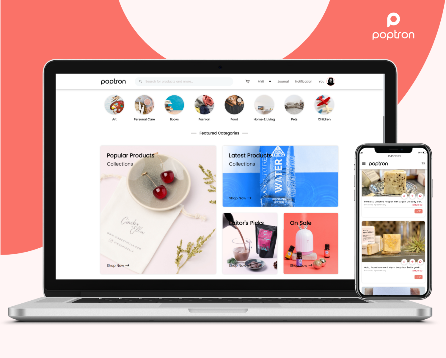Poptron’s platform features a simple, intuitive layout for easier browsing and shopping experience