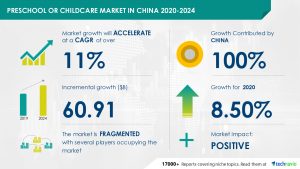 Technavio has been monitoring the preschool or childcare market and it is poised to grow by USD 60.91 billion during 2020-2024, progressing at a CAGR of over 11% during the forecast period. The report offers an up-to-date analysis regarding the current market scenario, latest trends and drivers, and the overall market environment.