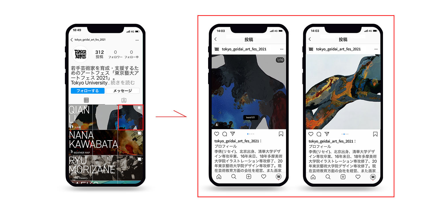 In the special page, the artists’ profiles, descriptions of their works, and up to 10 images per work will be posted. When you press the “like” button for the work you like, it will be reflected for the screening of excellent works and the work which collects the most “like” will be awarded with “Art Renaissance Award.” You can also be connected to the artists who have Instagram accounts.