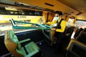 Before and after every trip, Aeroline added the additional process of sanitising and sterilising its buses with UVC rays that effectively kill germs and viruses on surfaces including high-contact point areas, bus seats, on-board amenities, toilets, door knobs, railings, hidden nooks and corners. UVC light is scientifically proven to kill Coronavirus including SARS, MERS and H1N1 on surfaces. Most recently, the Department of Homeland Security USA has released conclusive research that UV from sunlight can inactivate Coronavirus effectively. Globally, UVC is widely use to sanitise hospitals, hotel kitchens, food processing facilities, and now for the first time in the bus industry, Aeroline uses UVC to sanitise all internal surfaces and cabin air.