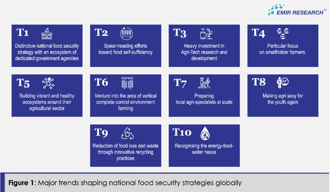 Earlier EMIR Research has argued that a solid national food security strategic framework must be aligned with the global food security trends (Figure 2) that are discerned by examining the experience of countries leading global food security forefront (for more details, refer to “4IR Towards National Food Security: Alignment with National Agrofood policy 2.0”).