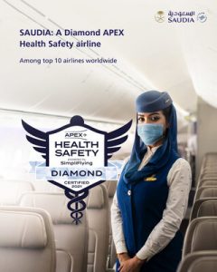 “SAUDIA’s rise to become a 2021 APEX Five Star airline has now been further advanced by reaching the pinnacle Diamond-level of hospital-grade health safety for the wellbeing of every customer,” APEX CEO Dr. Joe Leader stated.