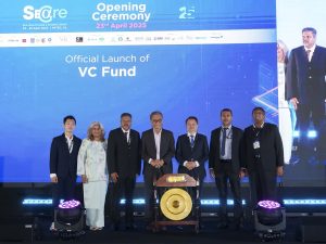 (From left) Dr. Keith Chong, Senior Partner at Zafar VC; Yang Berbahagia Dato’ Dr Saunthari Somasundaram, President of National Cancer Society Malaysia; Encik Zainul Alam Abdul Kadir, Managing Partner for Zafar VC; Yang Berhormat Datuk Seri Haji Dr. Dzulkefly bin Ahmad, Minister of Health Malaysia; Yang Berusaha Mr Richard Teo, Executive Chairman of Qube Integrated Malaysia Sdn. Bhd.; Encik Rahman Ali Abdul Wahab, Chief Executive Officer of 5 Pillars Ventures Sdn. Bhd.; and Yang Setia Kolonel Bersekutu Assoc. Prof. Dr Murallitharan Munisamy, Managing Director of National Cancer Society Malaysia, launched Zafar VC Fund, a RM1 billion initiative to drive healthcare innovation through startup and scale-up support. | MITEC, Kuala Lumpur, Malaysia. 23 April 2025 | Photo by SEACare / NHA File Photo