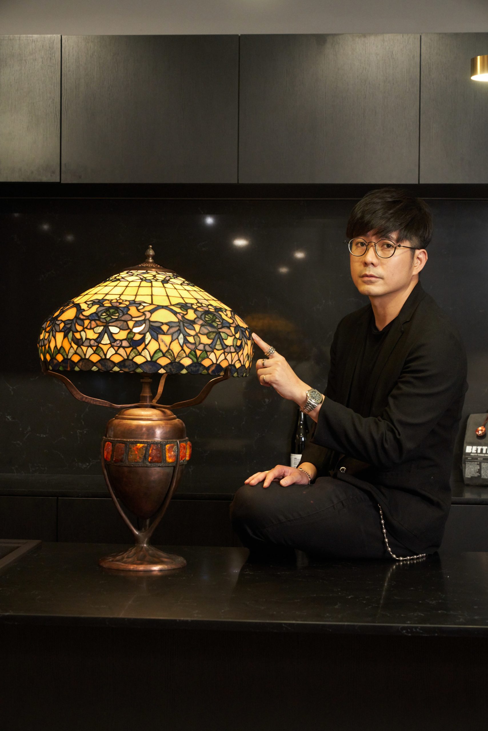 At a height of 9.5 inches with a diameter of 19 inches, Porcelain’s lampshade features a total of 588 pieces of stones which include yellow Phoenix jade, blue line stone, bluestone, and green east forest stone. According to In, the colour palette was exclusively selected to give the lamp a more distinctive character. In explains further: “I wanted the lamp to have a more neutral outlook which leans towards a masculine feel. Thus, I refrained from using too many colours for the shade, focusing on only a combination of yellow, blue and green.”