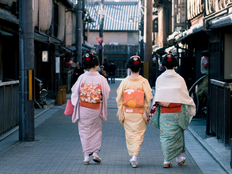 Three women wearing kimono, the traditional Japanese garment, walking on the street in Kyoto, Japan. 30 January 2019. | Photo by Satoshi Hirayama / Pexels / NHA File Photo
