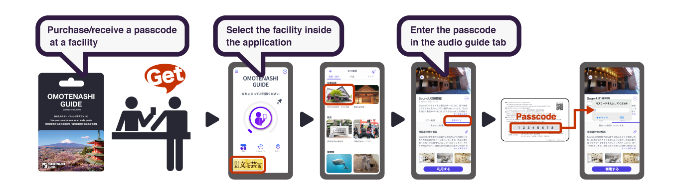 Yamaha will also conduct the demonstration (*) of its new “Audio Guide/Explanation Guide,” which can be used safely to avoid the risk of COVID-19 infection in museums and elsewhere. Providing audio guidance via visitors’ smartphones helps reduce physical contact, which could be caused by sharing dedicated rental devices, as well as close contact among visitors that could otherwise be made if the guide gives them vocal explanations nearby. This function can be used by launching the “OMOTENASHI GUIDE” application at each facility.