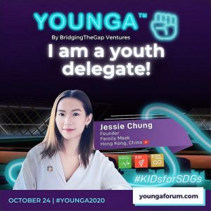 This fall, Jessie Chung from Hong Kong has been selected to represent Family Mask for the inaugural YOUNGA™ Forum. Organized by BridgingTheGap Ventures, this first-of-its-kind virtual global youth takeover of the United Nations is focused on a central theme for 2020—the future youth want, the action we need.