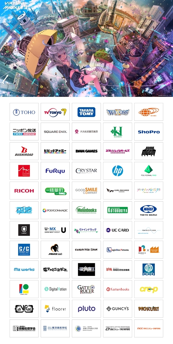 In Virtual Market 5, a record of 70 companies will be exhibiting with more than 100 official avatars of popular characters from their various entertainment IPs on sale, as well as exhibitions of real world products, organizations, and services.
