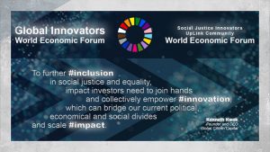 Q: I personally know that, apart from impact and innovation, you also embrace a third “I” in inclusion. Congratulations as well for being elected as a Social Justice Innovator by UpLink, the Forum’s platform seeking to advance the UN SDGs through innovation. Can you share a bit on the story behind it?