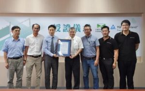 The smart parking directions system at the Nantou Service Area was certified after 1.5 months of system verification and testing. TUV Rheinland conducted 42 actual vehicle testing and verification tasks covering license plate recognition for streams of traffic, eTag detection, parking capacity monitoring, software and hardware functionality, and vehicle search functions. The system was validated against the project specifications and a certificate of conformity was subsequently issued on May 14. At the certification ceremony the two parties were represented by CRBO Director Huan-Ju Peng and Kevin Wu, Vice General Manager of Mobility Service, TUV Rheinland.