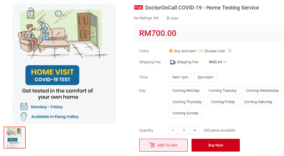 Home Visit Covid-29 Test Kit available in DoctorOnCall official store on Shopee Mall.