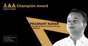Entropia founder and senior partner, Prashant Kumar, has been awarded the International Advertising Association (IAA) “Champion” Compass Award 2020 – in recognition of his notable contributions and achievements in the global marketing communications industry.