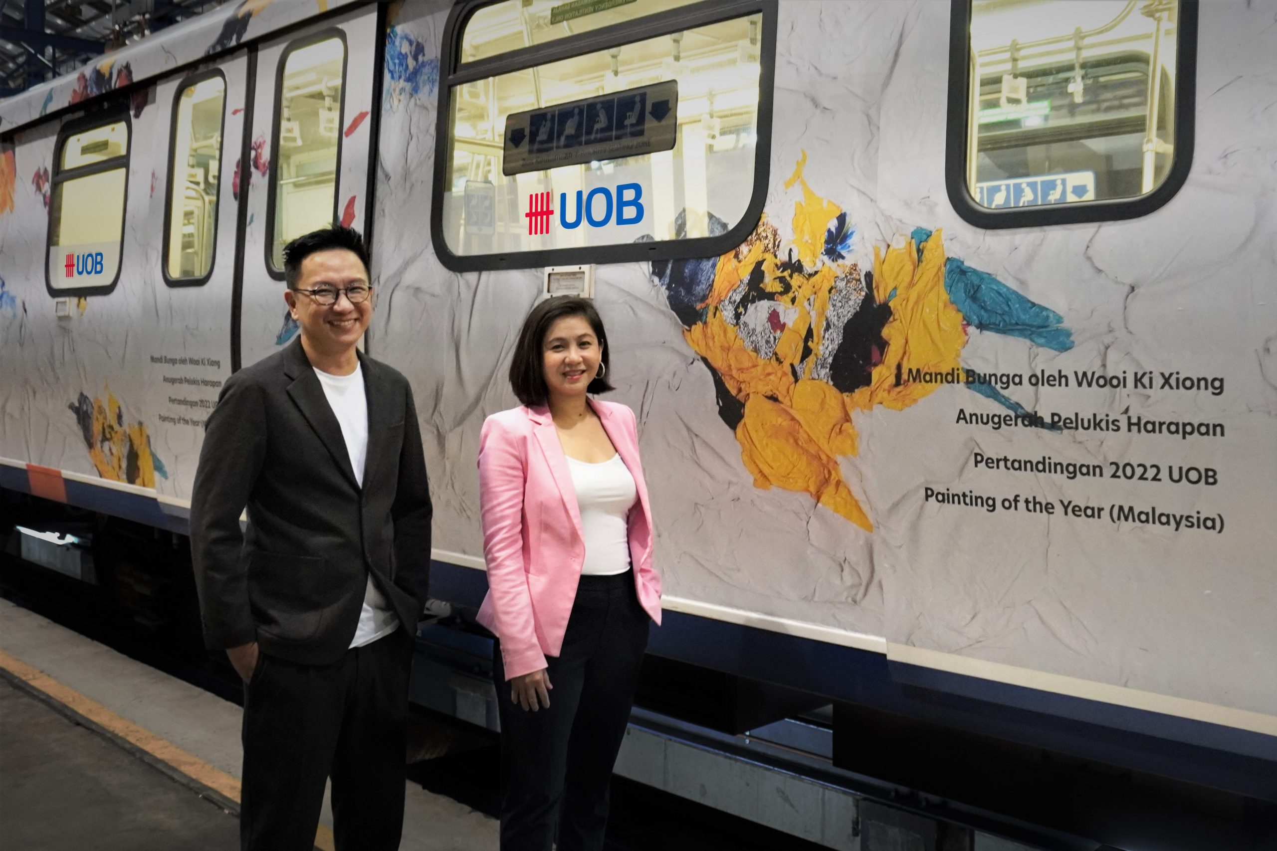 As part of UOB Malaysia’s initiative to bring art closer to the community, the Bank recently unveiled a vibrant light rail transit (LRT) wrap featuring an artwork by a winner of 2022 UOB Painting of the Year (Malaysia) (POY (Malaysia)). From now until June 2023, commuters on Rapid KL’s Kelana Jaya LRT line will be visually treated to the creative expression of Mr Wooi Ki Xiong’s Mandi Bunga (or Flower Bath).