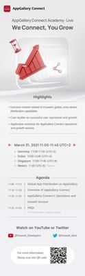 The HUAWEI AppGallery Connect Academy · Live event which will be held from 11:00 UTC+02:00 on March 31, 2021 will offer participants the opportunity to learn how to fully harness AppGallery’s global distribution capabilities in order to stand out from the competition, grow their user base and monetize their apps.