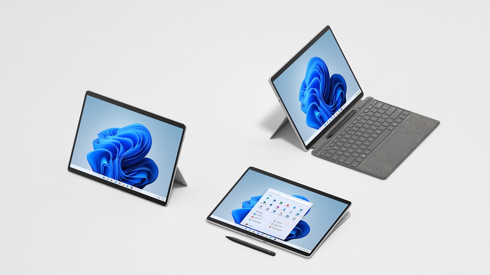 Surface Pro 8 combines the power of a laptop with the flexibility of a tablet, with the iconic Kickstand and detachable Keyboard, as well as built-in Slim Pen storage and charging.[2] It is also designed to light up the best of Windows 11, which features powerful new experiences that bring you closer to what you love. New features such as Snap Layouts, Widgets and Groups will empower your productivity and inspire your creativity, complementing the new Surface Pro 8 for a seamless user experience.