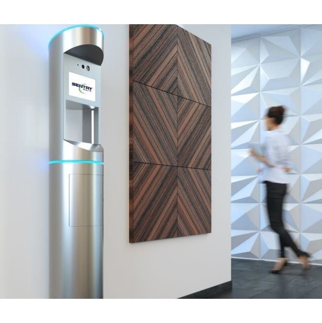 Known as the Sentry Health Kiosk™, the system was inspired by the company’s line of touchless smart parking products currently installed in municipalities and university settings around the world. Sentry Health Kiosk™ is a non-contact kiosk that automatically takes and reports body temperature, mandates hand sanitization and manages access control while creating a comprehensive audit trail.