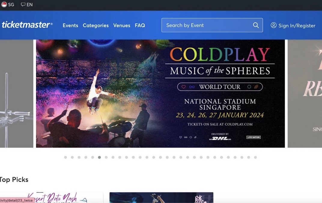 Coldplay concert poster on Ticketmaster. | Screenshot by Wise/NHA File Photo