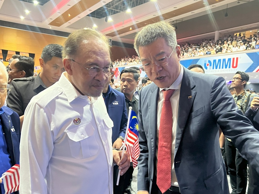 Prime Minister YAB Dato’ Seri Anwar Ibrahim with Steven Ge, managing director of ZTE Malaysia, at Multimedia University (MMU). A moment highlighting collaboration and innovation in driving Malaysia’s digital future. | Kuala Lumpur, Malaysia. 21 August 2025 | Photo by ZTE / NHA File Photo